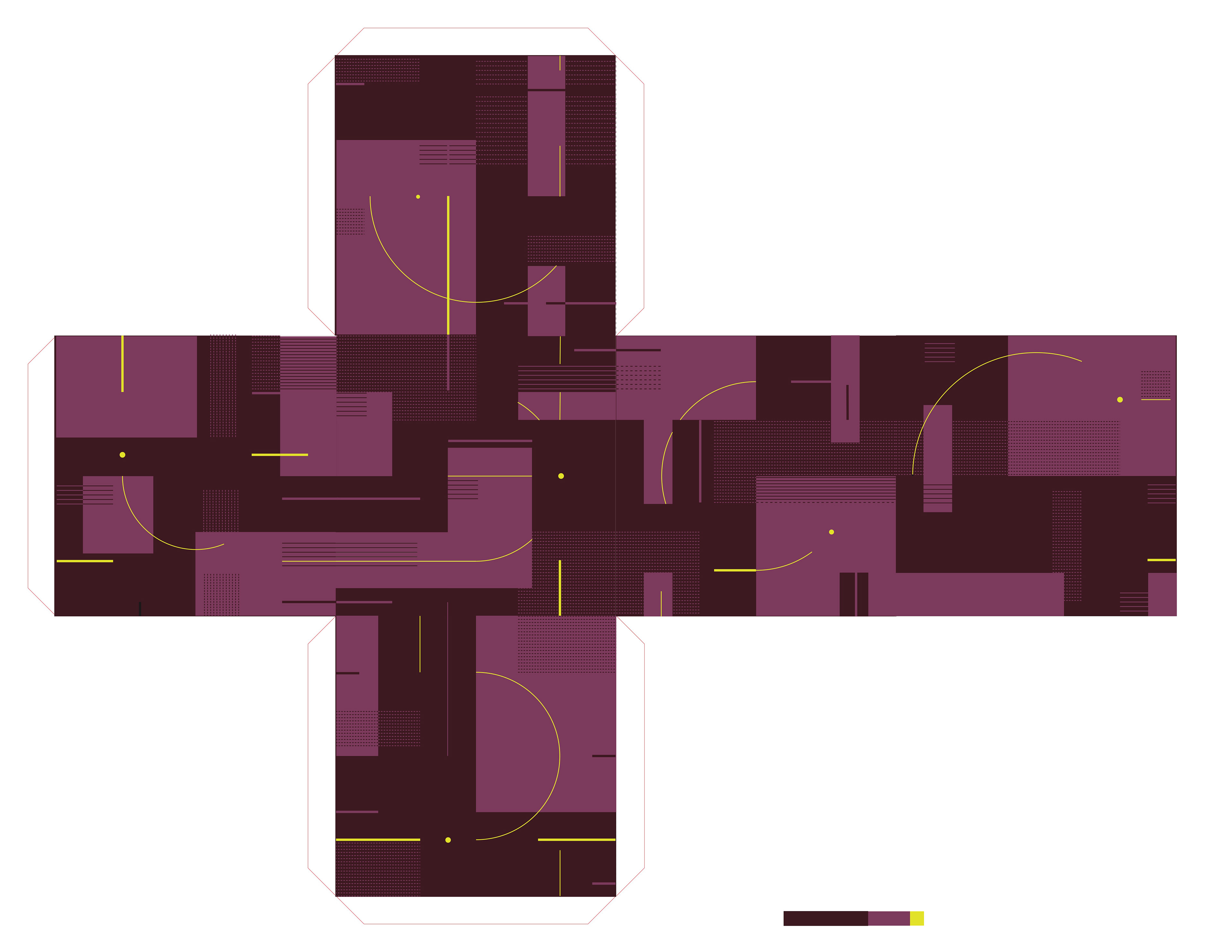 In this project, I aspired to make a three dimensional, dynamic cube with a consistent design system that focused on directing the path of the eye. Each side would operate within the design system while being unique in their own ways, as well as containing elements that crossed over the edges of each panel.