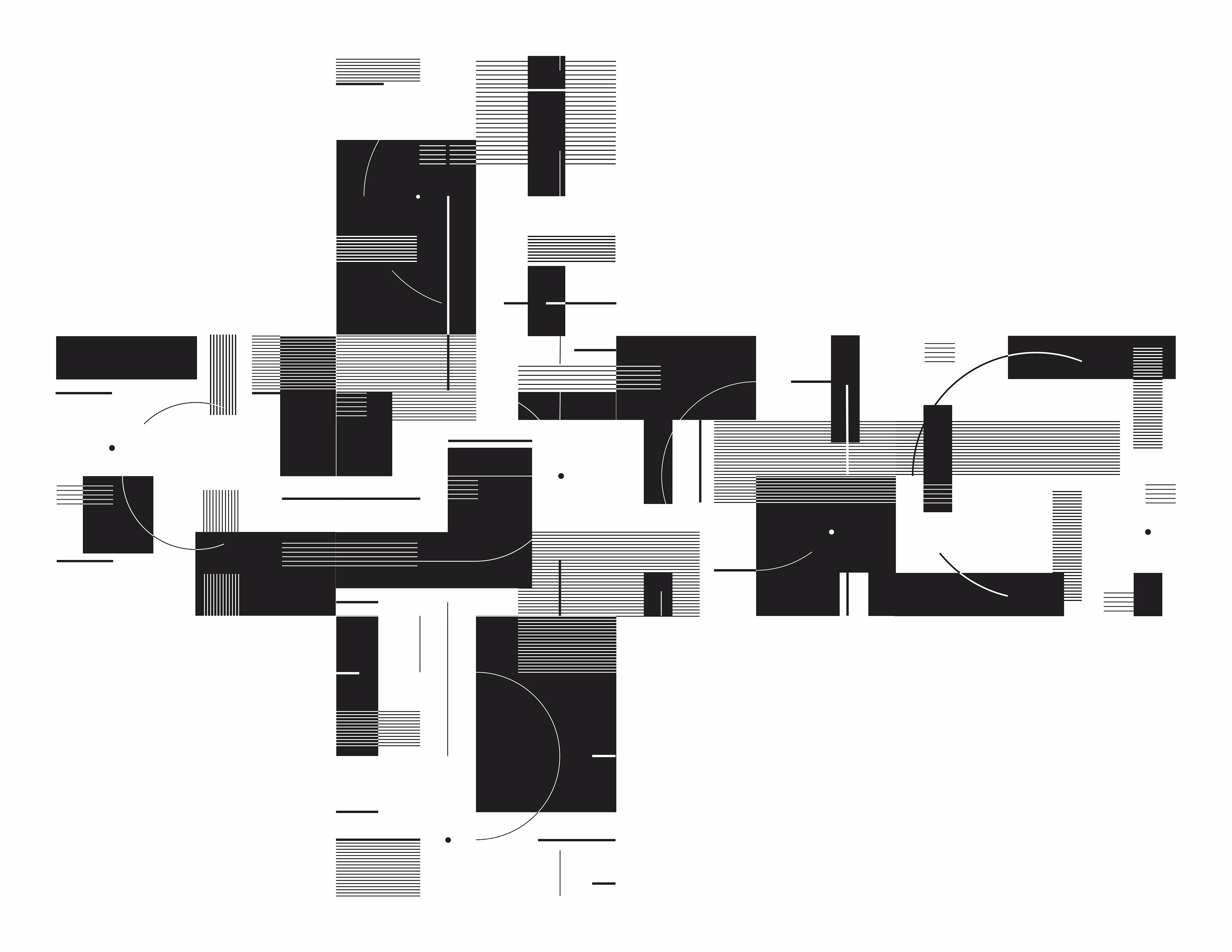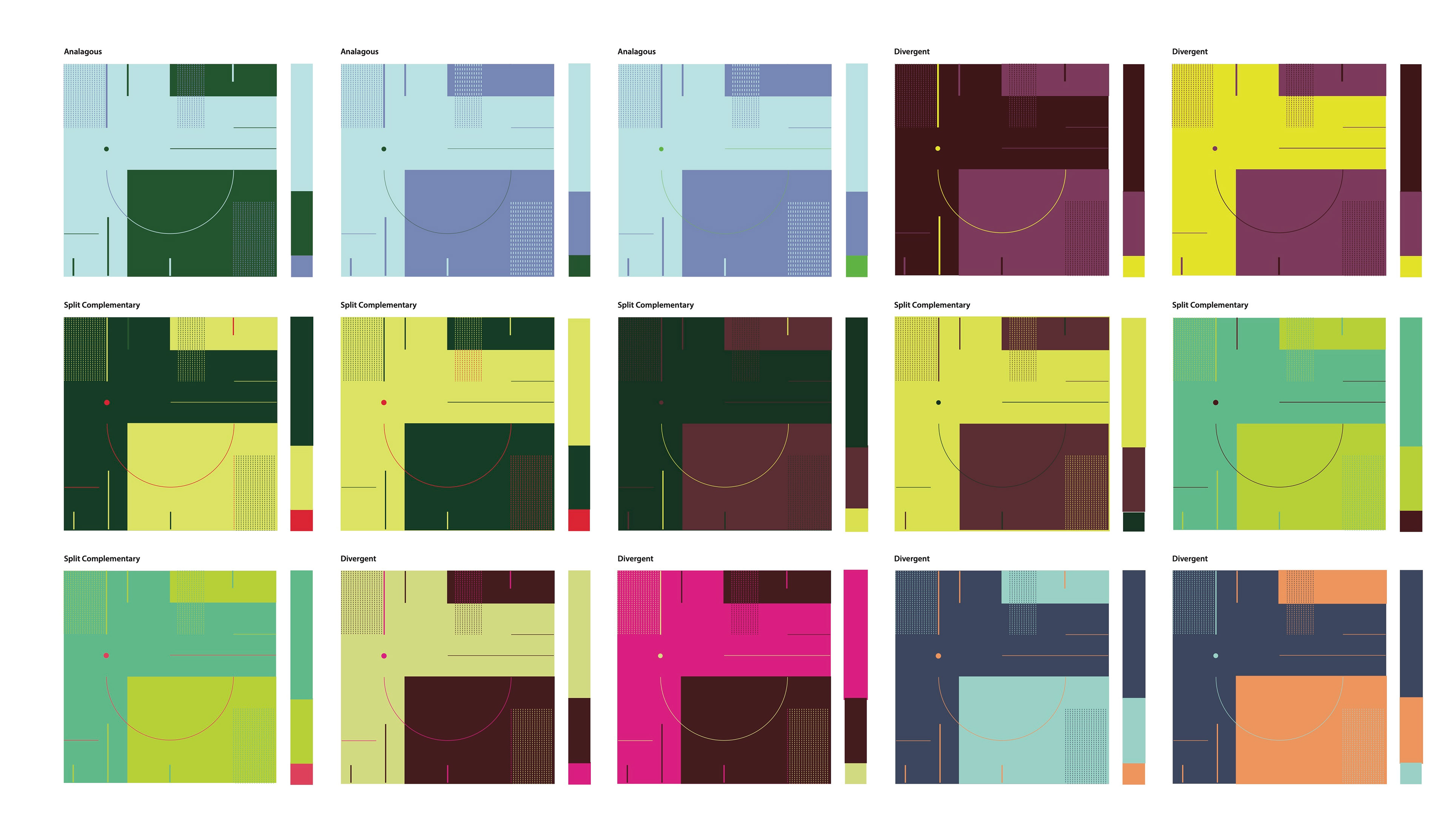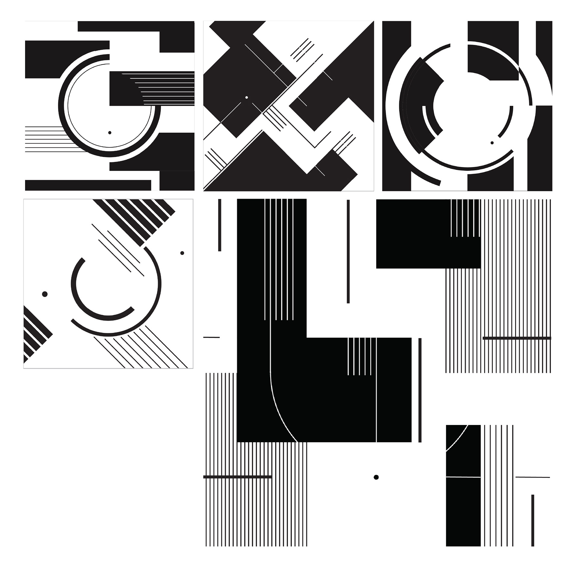 I began my process in black and white to focus on how each shape and line element interacted with one another.
